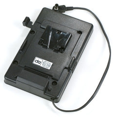 This V-Lock Mount battery plate mounts standard V-Lock batteries to products with a 44mm x 65mm four hole bolt pattern for EX3-SHOULDER with a Pivoting Back Plate. There is one D-Tap socket on the right edge.